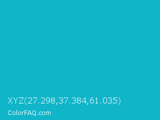 XYZ 27.298,37.384,61.035 Color is a normal cyan color and the nearest color is Pacific Blue #1ca9c9. Hex code #11b5c9 and RGB value is rgb(17,181,201). In RGB color space, this color is composed of 7% red, 71% green, 79% blue, In CMYK color space, this color is composed of 92% cyan, 10% magenta, 0% yellow , 21% black , In HSL color space, this color has a hue angle of 187° , 84% saturation and 43% lightness.