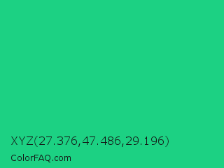 XYZ 27.376,47.486,29.196 Color is a normal green color and the nearest color is Mountain Meadow Crayola #1ab385. Hex code #1cd183 and RGB value is rgb(28,209,131). In RGB color space, this color is composed of 11% red, 82% green, 51% blue, In CMYK color space, this color is composed of 87% cyan, 0% magenta, 37% yellow , 18% black , In HSL color space, this color has a hue angle of 154° , 76% saturation and 46% lightness.