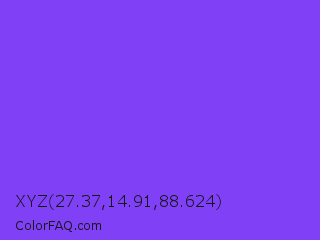 XYZ 27.37,14.91,88.624 Color is a light violet color and the nearest color is Blue Violet #8a2be2. Hex code #8040f6 and RGB value is rgb(128,64,246). In RGB color space, this color is composed of 50% red, 25% green, 96% blue, In CMYK color space, this color is composed of 48% cyan, 74% magenta, 0% yellow , 4% black , In HSL color space, this color has a hue angle of 261° , 91% saturation and 61% lightness.