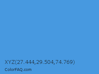 XYZ 27.444,29.504,74.769 Color is a normal blue color and the nearest color is Tufts Blue #3e8ede. Hex code #4799e0 and RGB value is rgb(71,153,224). In RGB color space, this color is composed of 28% red, 60% green, 88% blue, In CMYK color space, this color is composed of 68% cyan, 32% magenta, 0% yellow , 12% black , In HSL color space, this color has a hue angle of 208° , 71% saturation and 58% lightness.