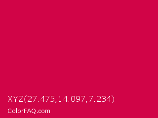 XYZ 27.475,14.097,7.234 Color is a normal rose color and the nearest color is Spanish Carmine #d10047. Hex code #d10447 and RGB value is rgb(209,4,71). In RGB color space, this color is composed of 82% red, 2% green, 28% blue, In CMYK color space, this color is composed of 0% cyan, 98% magenta, 66% yellow , 18% black , In HSL color space, this color has a hue angle of 340° , 96% saturation and 42% lightness.