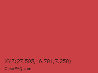 XYZ 27.505,16.781,7.258 Color is a normal red color and the nearest color is English Vermillion #cc474b. Hex code #cb4044 and RGB value is rgb(203,64,68). In RGB color space, this color is composed of 80% red, 25% green, 27% blue, In CMYK color space, this color is composed of 0% cyan, 68% magenta, 67% yellow , 20% black , In HSL color space, this color has a hue angle of 358° , 57% saturation and 52% lightness.