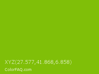 XYZ 27.577,41.868,6.858 Color is a normal green color and the nearest color is Apple Green #8db600. Hex code #80bf08 and RGB value is rgb(128,191,8). In RGB color space, this color is composed of 50% red, 75% green, 3% blue, In CMYK color space, this color is composed of 33% cyan, 0% magenta, 96% yellow , 25% black , In HSL color space, this color has a hue angle of 81° , 92% saturation and 39% lightness.