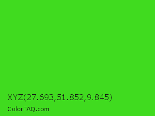 XYZ 27.693,51.852,9.845 Color is a normal green color and the nearest color is Harlequin Green #46cb18. Hex code #40db1f and RGB value is rgb(64,219,31). In RGB color space, this color is composed of 25% red, 86% green, 12% blue, In CMYK color space, this color is composed of 71% cyan, 0% magenta, 86% yellow , 14% black , In HSL color space, this color has a hue angle of 109° , 75% saturation and 49% lightness.