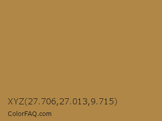 XYZ 27.706,27.013,9.715 Color is a normal orange color and the nearest color is Driftwood #af8751. Hex code #b08747 and RGB value is rgb(176,135,71). In RGB color space, this color is composed of 69% red, 53% green, 28% blue, In CMYK color space, this color is composed of 0% cyan, 23% magenta, 60% yellow , 31% black , In HSL color space, this color has a hue angle of 37° , 43% saturation and 48% lightness.