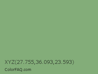 XYZ 27.755,36.093,23.593 Color is a normal green color and the nearest color is Asparagus #87a96b. Hex code #83ad79 and RGB value is rgb(131,173,121). In RGB color space, this color is composed of 51% red, 68% green, 47% blue, In CMYK color space, this color is composed of 24% cyan, 0% magenta, 30% yellow , 32% black , In HSL color space, this color has a hue angle of 108° , 24% saturation and 58% lightness.