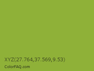XYZ 27.764,37.569,9.53 Color is a normal lime color and the nearest color is Sushi #87ab39. Hex code #8fb138 and RGB value is rgb(143,177,56). In RGB color space, this color is composed of 56% red, 69% green, 22% blue, In CMYK color space, this color is composed of 19% cyan, 0% magenta, 68% yellow , 31% black , In HSL color space, this color has a hue angle of 77° , 52% saturation and 46% lightness.