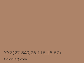 XYZ 27.849,26.116,16.67 Color is a normal orange color and the nearest color is Light Taupe #b38b6d. Hex code #ad8368 and RGB value is rgb(173,131,104). In RGB color space, this color is composed of 68% red, 51% green, 41% blue, In CMYK color space, this color is composed of 0% cyan, 24% magenta, 40% yellow , 32% black , In HSL color space, this color has a hue angle of 23° , 30% saturation and 54% lightness.