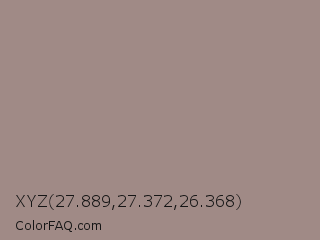 XYZ 27.889,27.372,26.368 Color is a normal red color and the nearest color is Pharlap #a3807b. Hex code #a08a86 and RGB value is rgb(160,138,134). In RGB color space, this color is composed of 63% red, 54% green, 53% blue, In CMYK color space, this color is composed of 0% cyan, 14% magenta, 16% yellow , 37% black , In HSL color space, this color has a hue angle of 9° , 12% saturation and 58% lightness.