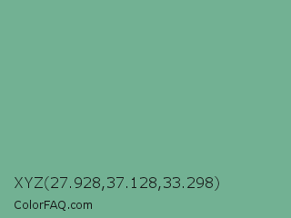 XYZ 27.928,37.128,33.298 Color is a normal green color and the nearest color is Silver Tree #66b58f. Hex code #72b193 and RGB value is rgb(114,177,147). In RGB color space, this color is composed of 45% red, 69% green, 58% blue, In CMYK color space, this color is composed of 36% cyan, 0% magenta, 17% yellow , 31% black , In HSL color space, this color has a hue angle of 151° , 29% saturation and 57% lightness.