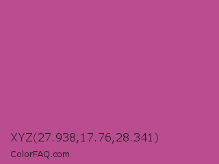 XYZ 27.938,17.76,28.341 Color is a normal magenta color and the nearest color is Mulberry #c54b8c. Hex code #ba4d90 and RGB value is rgb(186,77,144). In RGB color space, this color is composed of 73% red, 30% green, 56% blue, In CMYK color space, this color is composed of 0% cyan, 59% magenta, 23% yellow , 27% black , In HSL color space, this color has a hue angle of 323° , 44% saturation and 52% lightness.