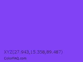 XYZ 27.943,15.358,89.487 Color is a light violet color and the nearest color is Navy Purple #9457eb. Hex code #8242f7 and RGB value is rgb(130,66,247). In RGB color space, this color is composed of 51% red, 26% green, 97% blue, In CMYK color space, this color is composed of 47% cyan, 73% magenta, 0% yellow , 3% black , In HSL color space, this color has a hue angle of 261° , 92% saturation and 61% lightness.