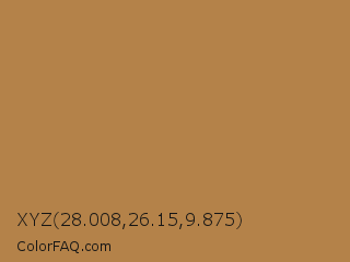 XYZ 28.008,26.15,9.875 Color is a normal orange color and the nearest color is Driftwood #af8751. Hex code #b48249 and RGB value is rgb(180,130,73). In RGB color space, this color is composed of 71% red, 51% green, 29% blue, In CMYK color space, this color is composed of 0% cyan, 28% magenta, 59% yellow , 29% black , In HSL color space, this color has a hue angle of 32° , 42% saturation and 50% lightness.