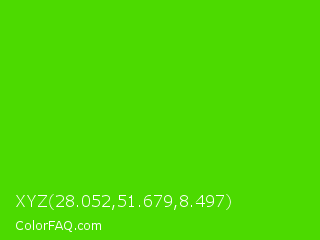 XYZ 28.052,51.679,8.497 Color is a normal green color and the nearest color is Harlequin Green #46cb18. Hex code #4cda00 and RGB value is rgb(76,218,0). In RGB color space, this color is composed of 30% red, 85% green, 0% blue, In CMYK color space, this color is composed of 65% cyan, 0% magenta, 100% yellow , 15% black , In HSL color space, this color has a hue angle of 99° , 100% saturation and 43% lightness.