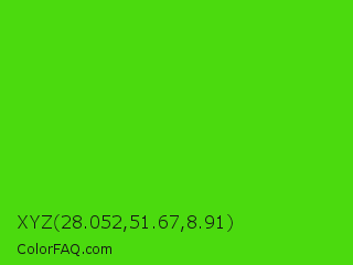 XYZ 28.052,51.67,8.91 Color is a normal green color and the nearest color is Harlequin Green #46cb18. Hex code #4bda0e and RGB value is rgb(75,218,14). In RGB color space, this color is composed of 29% red, 85% green, 5% blue, In CMYK color space, this color is composed of 66% cyan, 0% magenta, 94% yellow , 15% black , In HSL color space, this color has a hue angle of 102° , 88% saturation and 45% lightness.