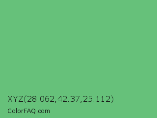 XYZ 28.062,42.37,25.112 Color is a normal green color and the nearest color is Iguana Green #71bc78. Hex code #66c17a and RGB value is rgb(102,193,122). In RGB color space, this color is composed of 40% red, 76% green, 48% blue, In CMYK color space, this color is composed of 47% cyan, 0% magenta, 37% yellow , 24% black , In HSL color space, this color has a hue angle of 133° , 42% saturation and 58% lightness.