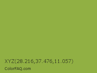 XYZ 28.216,37.476,11.057 Color is a normal lime color and the nearest color is Sushi #87ab39. Hex code #91b043 and RGB value is rgb(145,176,67). In RGB color space, this color is composed of 57% red, 69% green, 26% blue, In CMYK color space, this color is composed of 18% cyan, 0% magenta, 62% yellow , 31% black , In HSL color space, this color has a hue angle of 77° , 45% saturation and 48% lightness.