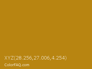 XYZ 28.256,27.006,4.254 Color is a normal orange color and the nearest color is Dark Goldenrod #b8860b. Hex code #b88511 and RGB value is rgb(184,133,17). In RGB color space, this color is composed of 72% red, 52% green, 7% blue, In CMYK color space, this color is composed of 0% cyan, 28% magenta, 91% yellow , 28% black , In HSL color space, this color has a hue angle of 42° , 83% saturation and 39% lightness.