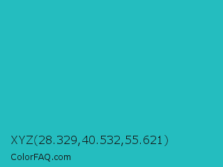 XYZ 28.329,40.532,55.621 Color is a normal cyan color and the nearest color is Java #1fc2c2. Hex code #24bdbf and RGB value is rgb(36,189,191). In RGB color space, this color is composed of 14% red, 74% green, 75% blue, In CMYK color space, this color is composed of 81% cyan, 1% magenta, 0% yellow , 25% black , In HSL color space, this color has a hue angle of 181° , 68% saturation and 45% lightness.