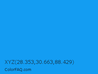 XYZ 28.353,30.663,88.429 Color is a normal blue color and the nearest color is Button Blue #24a0ed. Hex code #139df2 and RGB value is rgb(19,157,242). In RGB color space, this color is composed of 7% red, 62% green, 95% blue, In CMYK color space, this color is composed of 92% cyan, 35% magenta, 0% yellow , 5% black , In HSL color space, this color has a hue angle of 203° , 90% saturation and 51% lightness.