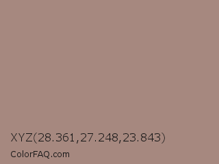 XYZ 28.361,27.248,23.843 Color is a normal red color and the nearest color is Pharlap #a3807b. Hex code #a6887f and RGB value is rgb(166,136,127). In RGB color space, this color is composed of 65% red, 53% green, 50% blue, In CMYK color space, this color is composed of 0% cyan, 18% magenta, 23% yellow , 35% black , In HSL color space, this color has a hue angle of 14° , 18% saturation and 57% lightness.