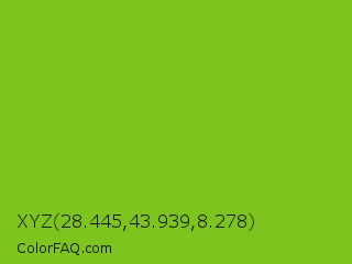XYZ 28.445,43.939,8.278 Color is a normal green color and the nearest color is Lima #76bd17. Hex code #7dc41f and RGB value is rgb(125,196,31). In RGB color space, this color is composed of 49% red, 77% green, 12% blue, In CMYK color space, this color is composed of 36% cyan, 0% magenta, 84% yellow , 23% black , In HSL color space, this color has a hue angle of 86° , 73% saturation and 45% lightness.