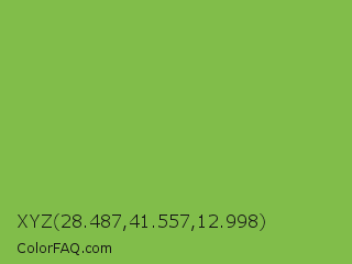 XYZ 28.487,41.557,12.998 Color is a normal green color and the nearest color is Bud Green #7bb661. Hex code #81bd4a and RGB value is rgb(129,189,74). In RGB color space, this color is composed of 51% red, 74% green, 29% blue, In CMYK color space, this color is composed of 32% cyan, 0% magenta, 61% yellow , 26% black , In HSL color space, this color has a hue angle of 91° , 47% saturation and 52% lightness.