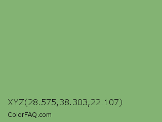 XYZ 28.575,38.303,22.107 Color is a normal green color and the nearest color is Asparagus #87a96b. Hex code #83b373 and RGB value is rgb(131,179,115). In RGB color space, this color is composed of 51% red, 70% green, 45% blue, In CMYK color space, this color is composed of 27% cyan, 0% magenta, 36% yellow , 30% black , In HSL color space, this color has a hue angle of 105° , 30% saturation and 58% lightness.
