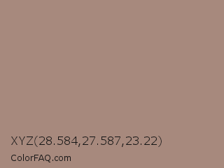 XYZ 28.584,27.587,23.22 Color is a normal orange color and the nearest color is Sandrift #ab917a. Hex code #a7897d and RGB value is rgb(167,137,125). In RGB color space, this color is composed of 65% red, 54% green, 49% blue, In CMYK color space, this color is composed of 0% cyan, 18% magenta, 25% yellow , 35% black , In HSL color space, this color has a hue angle of 17° , 19% saturation and 57% lightness.