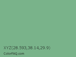 XYZ 28.593,38.14,29.9 Color is a normal green color and the nearest color is Bay Leaf #7da98d. Hex code #79b38a and RGB value is rgb(121,179,138). In RGB color space, this color is composed of 47% red, 70% green, 54% blue, In CMYK color space, this color is composed of 32% cyan, 0% magenta, 23% yellow , 30% black , In HSL color space, this color has a hue angle of 138° , 28% saturation and 59% lightness.