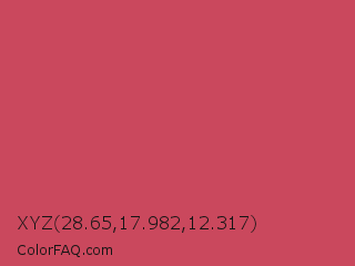 XYZ 28.65,17.982,12.317 Color is a normal red color and the nearest color is Dark Terra Cotta #cc4e5c. Hex code #ca485d and RGB value is rgb(202,72,93). In RGB color space, this color is composed of 79% red, 28% green, 36% blue, In CMYK color space, this color is composed of 0% cyan, 64% magenta, 54% yellow , 21% black , In HSL color space, this color has a hue angle of 350° , 55% saturation and 54% lightness.
