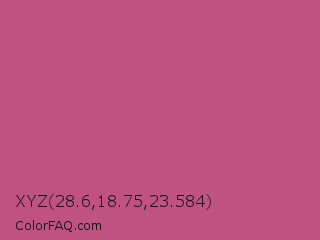XYZ 28.6,18.75,23.584 Color is a normal rose color and the nearest color is Mulberry #c54b8c. Hex code #bf5283 and RGB value is rgb(191,82,131). In RGB color space, this color is composed of 75% red, 32% green, 51% blue, In CMYK color space, this color is composed of 0% cyan, 57% magenta, 31% yellow , 25% black , In HSL color space, this color has a hue angle of 333° , 46% saturation and 54% lightness.