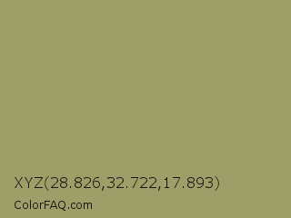 XYZ 28.826,32.722,17.893 Color is a normal yellow color and the nearest color is Gurkha #9a9577. Hex code #9e9e68 and RGB value is rgb(158,158,104). In RGB color space, this color is composed of 62% red, 62% green, 41% blue, In CMYK color space, this color is composed of 0% cyan, 0% magenta, 34% yellow , 38% black , In HSL color space, this color has a hue angle of 60° , 22% saturation and 51% lightness.