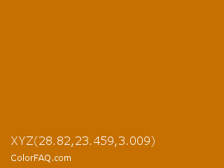 XYZ 28.82,23.459,3.009 Color is a normal orange color and the nearest color is Indochine #c26b03. Hex code #c57000 and RGB value is rgb(197,112,0). In RGB color space, this color is composed of 77% red, 44% green, 0% blue, In CMYK color space, this color is composed of 0% cyan, 43% magenta, 100% yellow , 23% black , In HSL color space, this color has a hue angle of 34° , 100% saturation and 39% lightness.