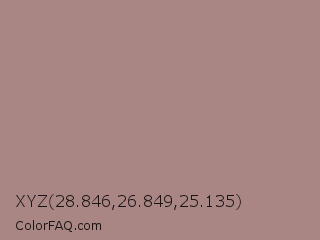 XYZ 28.846,26.849,25.135 Color is a normal red color and the nearest color is Pharlap #a3807b. Hex code #a98583 and RGB value is rgb(169,133,131). In RGB color space, this color is composed of 66% red, 52% green, 51% blue, In CMYK color space, this color is composed of 0% cyan, 21% magenta, 22% yellow , 34% black , In HSL color space, this color has a hue angle of 3° , 18% saturation and 59% lightness.