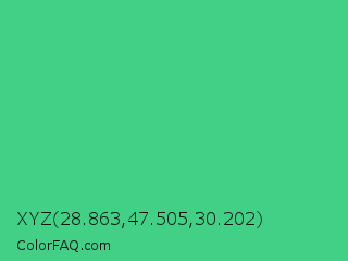 XYZ 28.863,47.505,30.202 Color is a normal green color and the nearest color is Ocean Green #48bf91. Hex code #42cf86 and RGB value is rgb(66,207,134). In RGB color space, this color is composed of 26% red, 81% green, 53% blue, In CMYK color space, this color is composed of 68% cyan, 0% magenta, 35% yellow , 19% black , In HSL color space, this color has a hue angle of 149° , 59% saturation and 54% lightness.