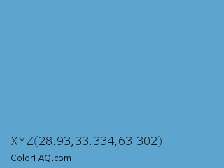 XYZ 28.93,33.334,63.302 Color is a normal blue color and the nearest color is Carolina Blue #56a0d3. Hex code #5da4ce and RGB value is rgb(93,164,206). In RGB color space, this color is composed of 36% red, 64% green, 81% blue, In CMYK color space, this color is composed of 55% cyan, 20% magenta, 0% yellow , 19% black , In HSL color space, this color has a hue angle of 202° , 54% saturation and 59% lightness.