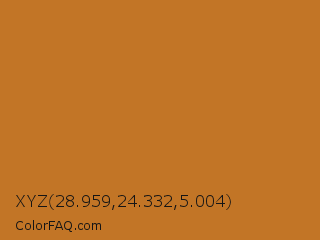 XYZ 28.959,24.332,5.004 Color is a normal orange color and the nearest color is Ochre #cc7722. Hex code #c27526 and RGB value is rgb(194,117,38). In RGB color space, this color is composed of 76% red, 46% green, 15% blue, In CMYK color space, this color is composed of 0% cyan, 40% magenta, 80% yellow , 24% black , In HSL color space, this color has a hue angle of 30° , 67% saturation and 45% lightness.