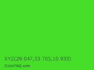 XYZ 29.047,53.705,10.933 Color is a normal green color and the nearest color is Harlequin Green #46cb18. Hex code #46de29 and RGB value is rgb(70,222,41). In RGB color space, this color is composed of 27% red, 87% green, 16% blue, In CMYK color space, this color is composed of 68% cyan, 0% magenta, 82% yellow , 13% black , In HSL color space, this color has a hue angle of 110° , 73% saturation and 52% lightness.
