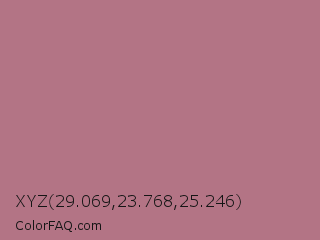 XYZ 29.069,23.768,25.246 Color is a normal rose color and the nearest color is Turkish Rose #b57281. Hex code #b37485 and RGB value is rgb(179,116,133). In RGB color space, this color is composed of 70% red, 45% green, 52% blue, In CMYK color space, this color is composed of 0% cyan, 35% magenta, 26% yellow , 30% black , In HSL color space, this color has a hue angle of 344° , 29% saturation and 58% lightness.
