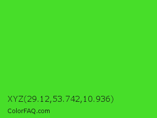 XYZ 29.12,53.742,10.936 Color is a normal green color and the nearest color is Harlequin Green #46cb18. Hex code #47de29 and RGB value is rgb(71,222,41). In RGB color space, this color is composed of 28% red, 87% green, 16% blue, In CMYK color space, this color is composed of 68% cyan, 0% magenta, 82% yellow , 13% black , In HSL color space, this color has a hue angle of 110° , 73% saturation and 52% lightness.