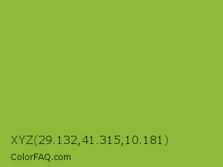 XYZ 29.132,41.315,10.181 Color is a normal green color and the nearest color is Sushi #87ab39. Hex code #8bbb38 and RGB value is rgb(139,187,56). In RGB color space, this color is composed of 55% red, 73% green, 22% blue, In CMYK color space, this color is composed of 26% cyan, 0% magenta, 70% yellow , 27% black , In HSL color space, this color has a hue angle of 82° , 54% saturation and 48% lightness.