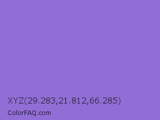 XYZ 29.283,21.812,66.285 Color is a light violet color and the nearest color is Dark Pastel Purple #966fd6. Hex code #916dd6 and RGB value is rgb(145,109,214). In RGB color space, this color is composed of 57% red, 43% green, 84% blue, In CMYK color space, this color is composed of 32% cyan, 49% magenta, 0% yellow , 16% black , In HSL color space, this color has a hue angle of 261° , 56% saturation and 63% lightness.