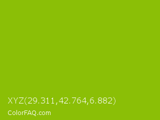 XYZ 29.311,42.764,6.882 Color is a normal lime color and the nearest color is Apple Green #8db600. Hex code #8bbf06 and RGB value is rgb(139,191,6). In RGB color space, this color is composed of 55% red, 75% green, 2% blue, In CMYK color space, this color is composed of 27% cyan, 0% magenta, 97% yellow , 25% black , In HSL color space, this color has a hue angle of 77° , 94% saturation and 39% lightness.