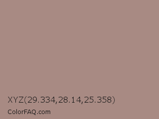 XYZ 29.334,28.14,25.358 Color is a normal red color and the nearest color is Sandrift #ab917a. Hex code #a88a83 and RGB value is rgb(168,138,131). In RGB color space, this color is composed of 66% red, 54% green, 51% blue, In CMYK color space, this color is composed of 0% cyan, 18% magenta, 22% yellow , 34% black , In HSL color space, this color has a hue angle of 11° , 18% saturation and 59% lightness.