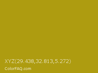 XYZ 29.438,32.813,5.272 Color is a normal yellow color and the nearest color is Sahara #b7a214. Hex code #ae9c10 and RGB value is rgb(174,156,16). In RGB color space, this color is composed of 68% red, 61% green, 6% blue, In CMYK color space, this color is composed of 0% cyan, 10% magenta, 91% yellow , 32% black , In HSL color space, this color has a hue angle of 53° , 83% saturation and 37% lightness.