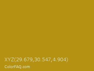 XYZ 29.679,30.547,4.904 Color is a normal yellow color and the nearest color is Dark Goldenrod #b8860b. Hex code #b69212 and RGB value is rgb(182,146,18). In RGB color space, this color is composed of 71% red, 57% green, 7% blue, In CMYK color space, this color is composed of 0% cyan, 20% magenta, 90% yellow , 29% black , In HSL color space, this color has a hue angle of 47° , 82% saturation and 39% lightness.