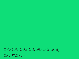 XYZ 29.693,53.692,26.568 Color is a normal green color and the nearest color is Spring Green #00ff7f. Hex code #0ede78 and RGB value is rgb(14,222,120). In RGB color space, this color is composed of 5% red, 87% green, 47% blue, In CMYK color space, this color is composed of 94% cyan, 0% magenta, 46% yellow , 13% black , In HSL color space, this color has a hue angle of 151° , 88% saturation and 46% lightness.
