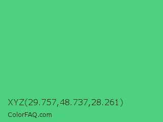 XYZ 29.757,48.737,28.261 Color is a normal green color and the nearest color is Emerald #50c878. Hex code #4dd180 and RGB value is rgb(77,209,128). In RGB color space, this color is composed of 30% red, 82% green, 50% blue, In CMYK color space, this color is composed of 63% cyan, 0% magenta, 39% yellow , 18% black , In HSL color space, this color has a hue angle of 143° , 59% saturation and 56% lightness.