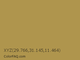 XYZ 29.766,31.145,11.464 Color is a normal orange color and the nearest color is Limed Oak #ac8a56. Hex code #af954d and RGB value is rgb(175,149,77). In RGB color space, this color is composed of 69% red, 58% green, 30% blue, In CMYK color space, this color is composed of 0% cyan, 15% magenta, 56% yellow , 31% black , In HSL color space, this color has a hue angle of 44° , 39% saturation and 49% lightness.